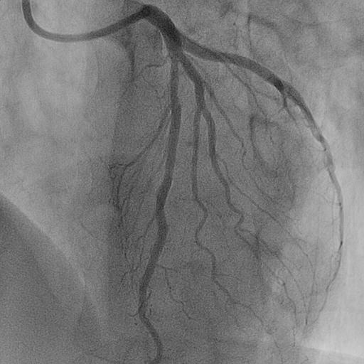 A 50-year-old man presented with a 3-month history of exertional chest discomfort. He had no significant past medical history, but reported a 15-year history of cigarette smoking. On admission, he was hemodynamically stable, and physical examination revealed no notable abnormalities. Resting 12-lead ECG showed no ischemic changes, and transthoracic echocardiography demonstrated preserved left ventricular systolic function without regional wall-motion abnormalities.