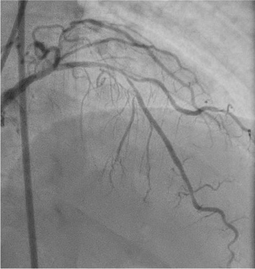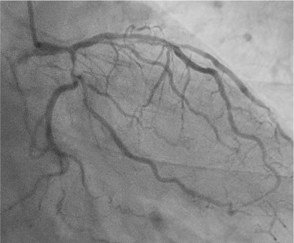 A man in his seventies presented with a two-month history of exertional chest pain. On admission he was hemodynamically stable, with no remarkable physical findings. His cardiovascular risk factors included diabetes mellitus, dyslipidemia, hypertension, and a past smoking history.