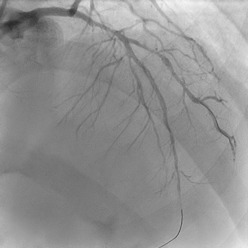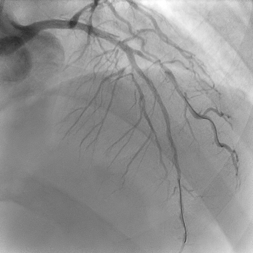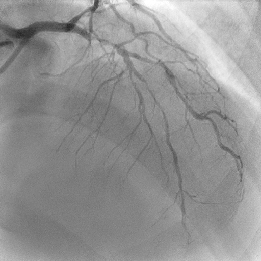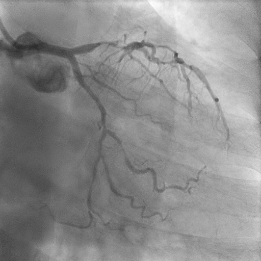 Coronary angiography revealed mild disease of the left main stem. The LAD exhibited severe proximal, mid, and distal disease of a diffuse nature. The LCx demonstrated severe mid–distal disease with a severely stenosed proximal obtuse marginal branch. The dominant RCA showed severe mid-vessel disease with significant involvement of the PL branch.