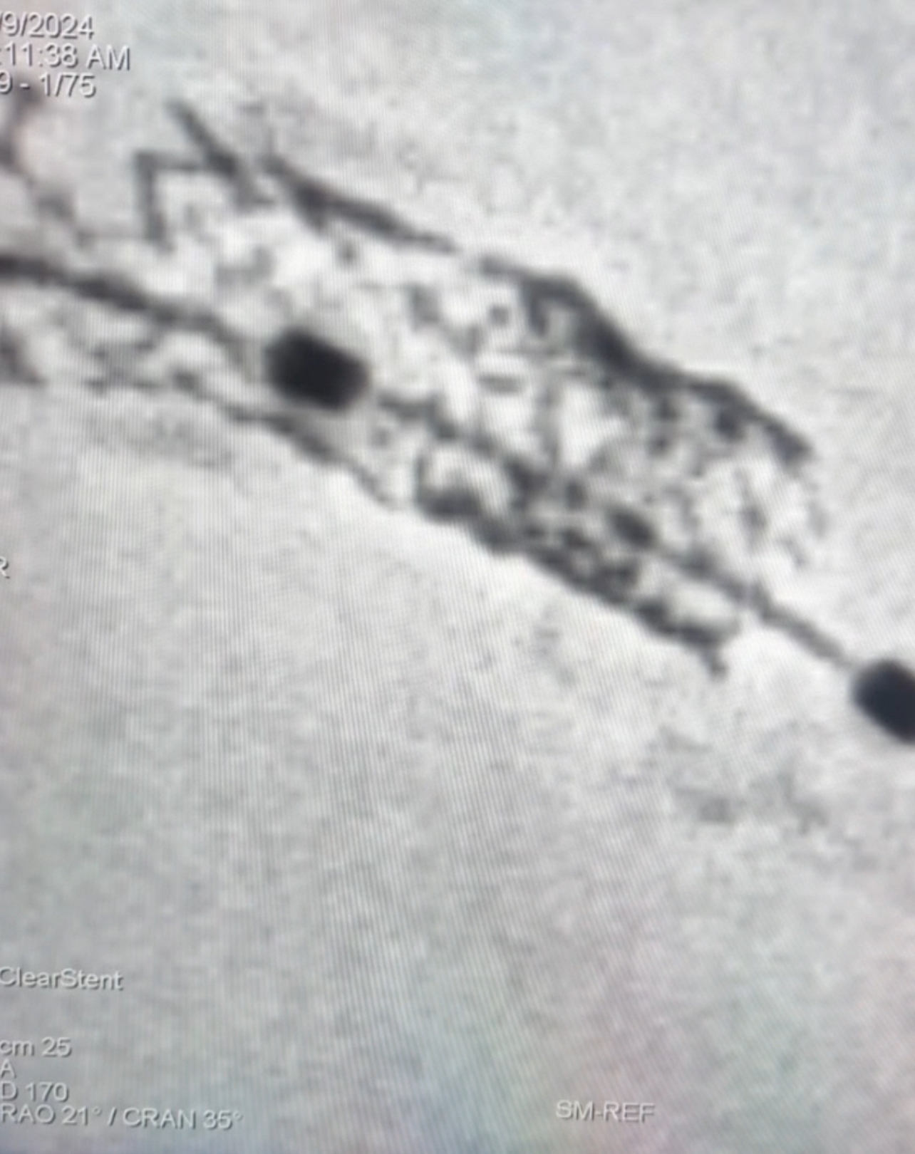 A 51-year-old man hospitalized for STEMI with 5 hours onset. He had a history of ex-smoker, cessation 1 year without hypertension neither diabetus. Physical examinations is unremarkable. Emergency coronary angiography is proceed.