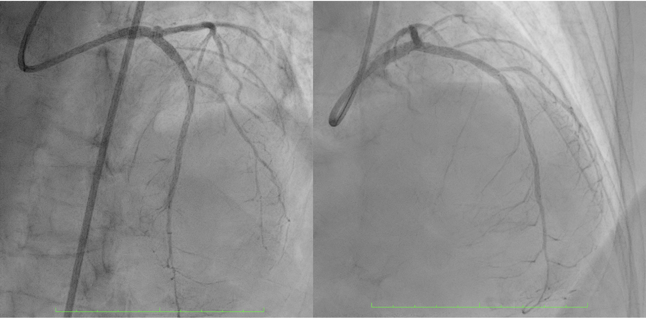 Chest X-ray revealed cardiomegaly with no sign of pulmonary oedema. Other laboratory results were within normal limits, except for a high-sensitivity troponin-I level of 221 ng/mL. The patient was diagnosed with a non–ST-segment elevation myocardial infarction (NSTEMI), and early percutaneous coronary intervention (PCI) was planned.