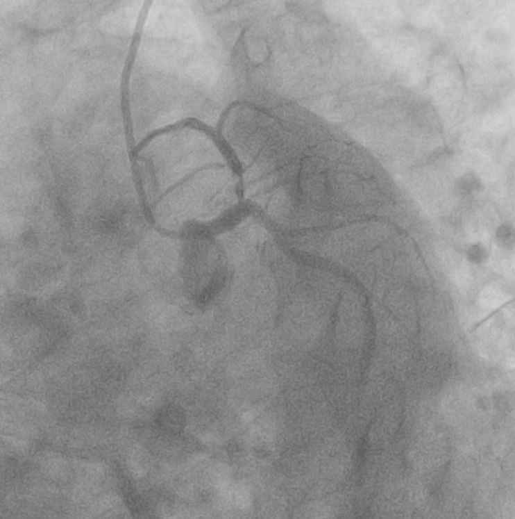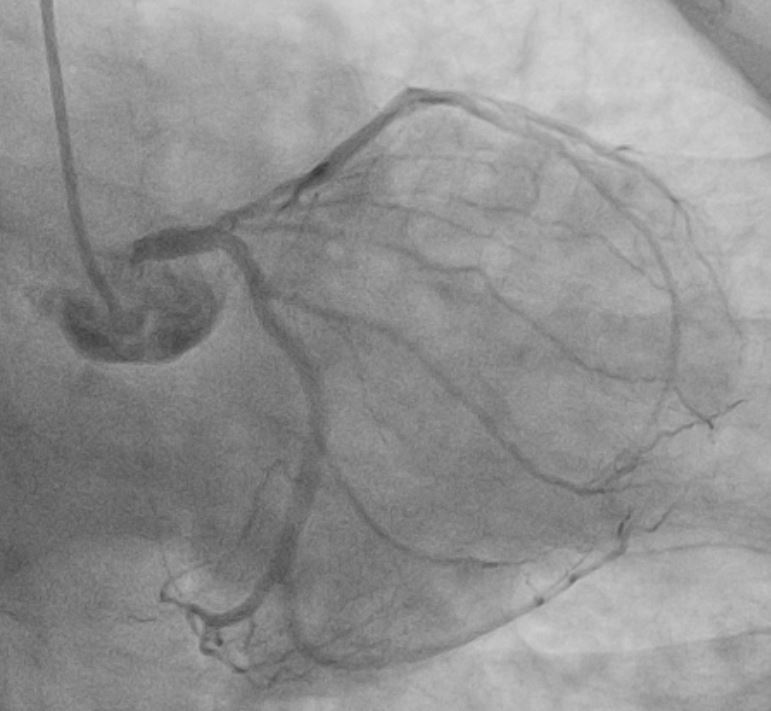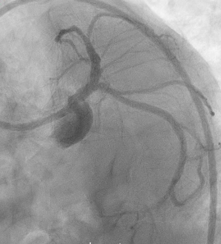 Coronary angiogram shows severe disease ostio-proximal LAD with severe calcification/calcium nodule , mild disease left circumflexsevere stenosis proximal and mid RCA -recessive