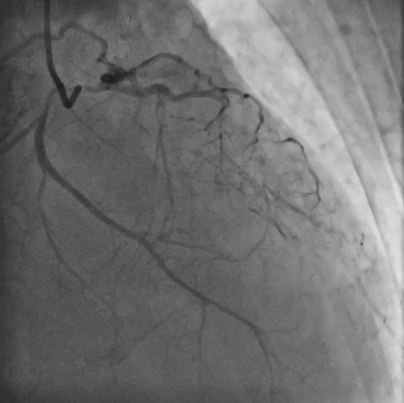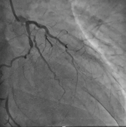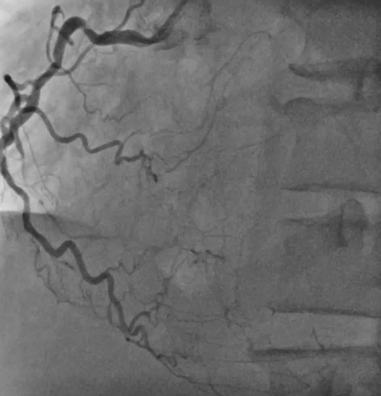 A 49year-old man with long standing smoking history and diabetes presented with non ST elevation myocardial infarction and acute pulmonary edema. He had on and off exertional angina but did not seek medical attention before.