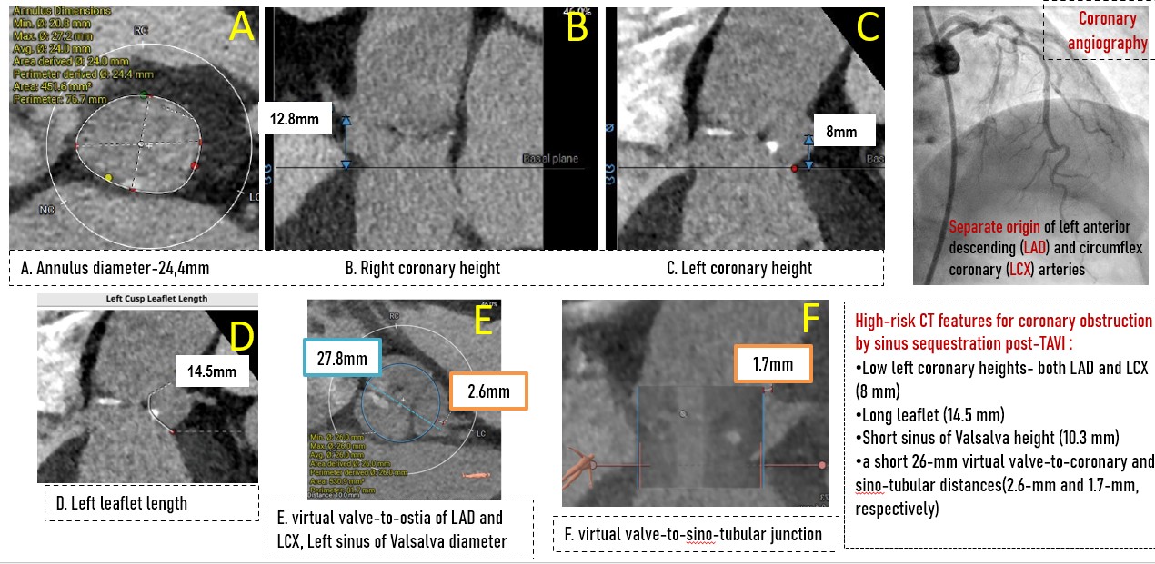 CAG- Minor disease. Separate origin of LAD and LCX from left sinus.High-risk CT features for coronary obstruction by sinus sequestration post-TAVI :